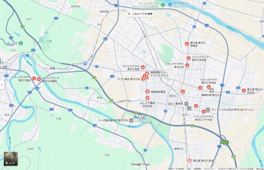 <画像出典>Googlemap:寒河江市内 ドラッグストア