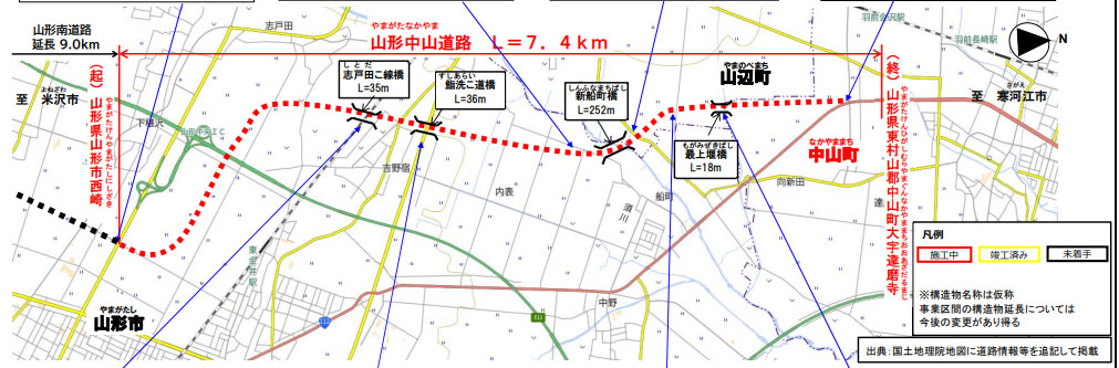 <画像出典>山形河川国道事務所:一般国道112号線 山形中山道路 工事状況