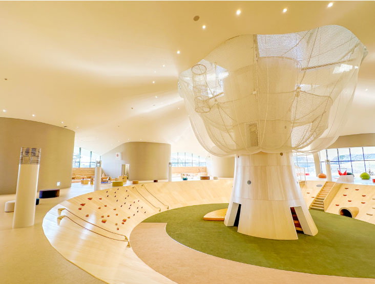特徴的な屋根構造の屋内型児童遊戯施設。チェリーランドの近くにあります。