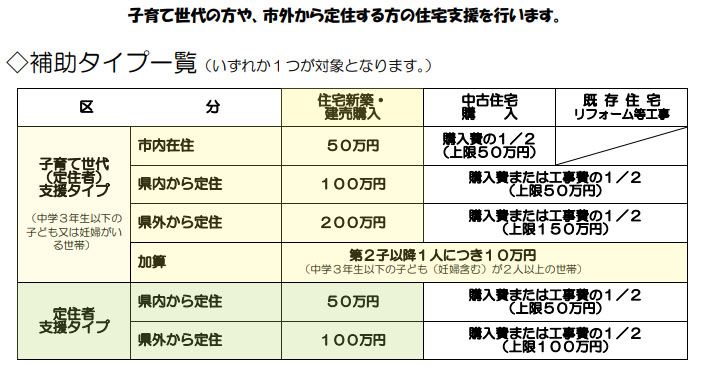 ●寒河江市子育て定住建築事業補助金